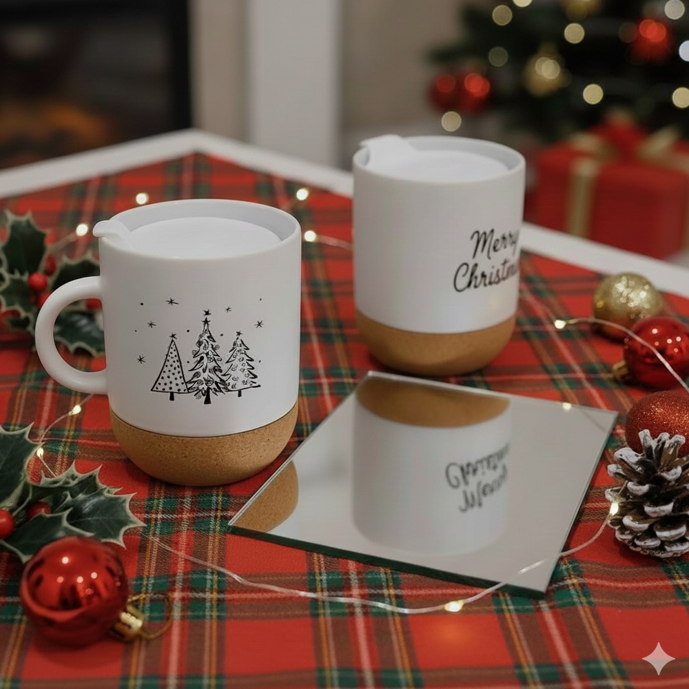 Kubek z zimowym motywem choinek to subtelny i elegancki sposób na wprowadzenie świątecznego klimatu do codziennych rytuałów. Idealny na gorącą czekoladę, kawę lub aromatyczną herbatę w chłodne wieczory. Minimalistyczny design i naturalny, korkowy spód nadają mu wyjątkowego uroku oraz ciepłego, skandynawskiego charakteru.